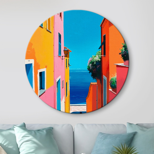 Tableaux rondes Maisons imitation croquis et aquarelle