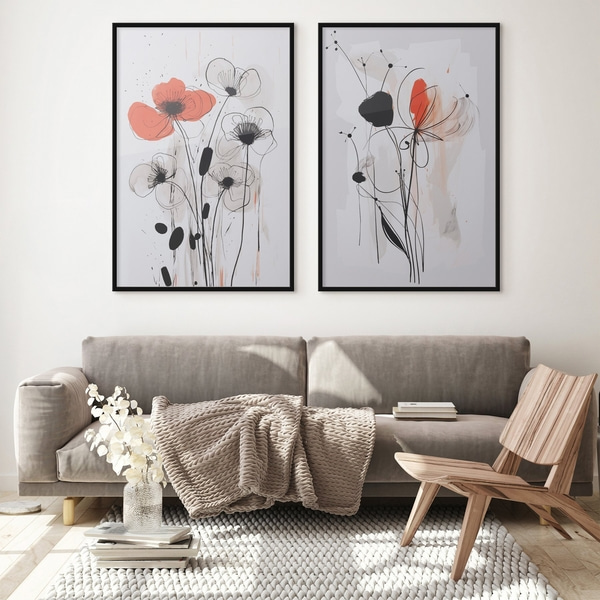 Fleurs blanches rehaussées de touches jaunes et feuilles délicates sur fond texturé, art moderne