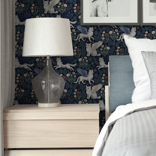 Papier peint Des œillets poudrés sur fond gris-bleu sarcelle, imprimé raffiné