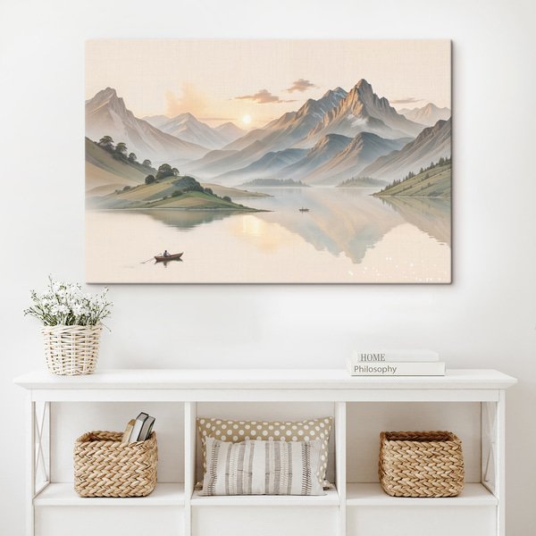 Tableaux Abstraction. Arbre et soleil. Minimalisme japonais.