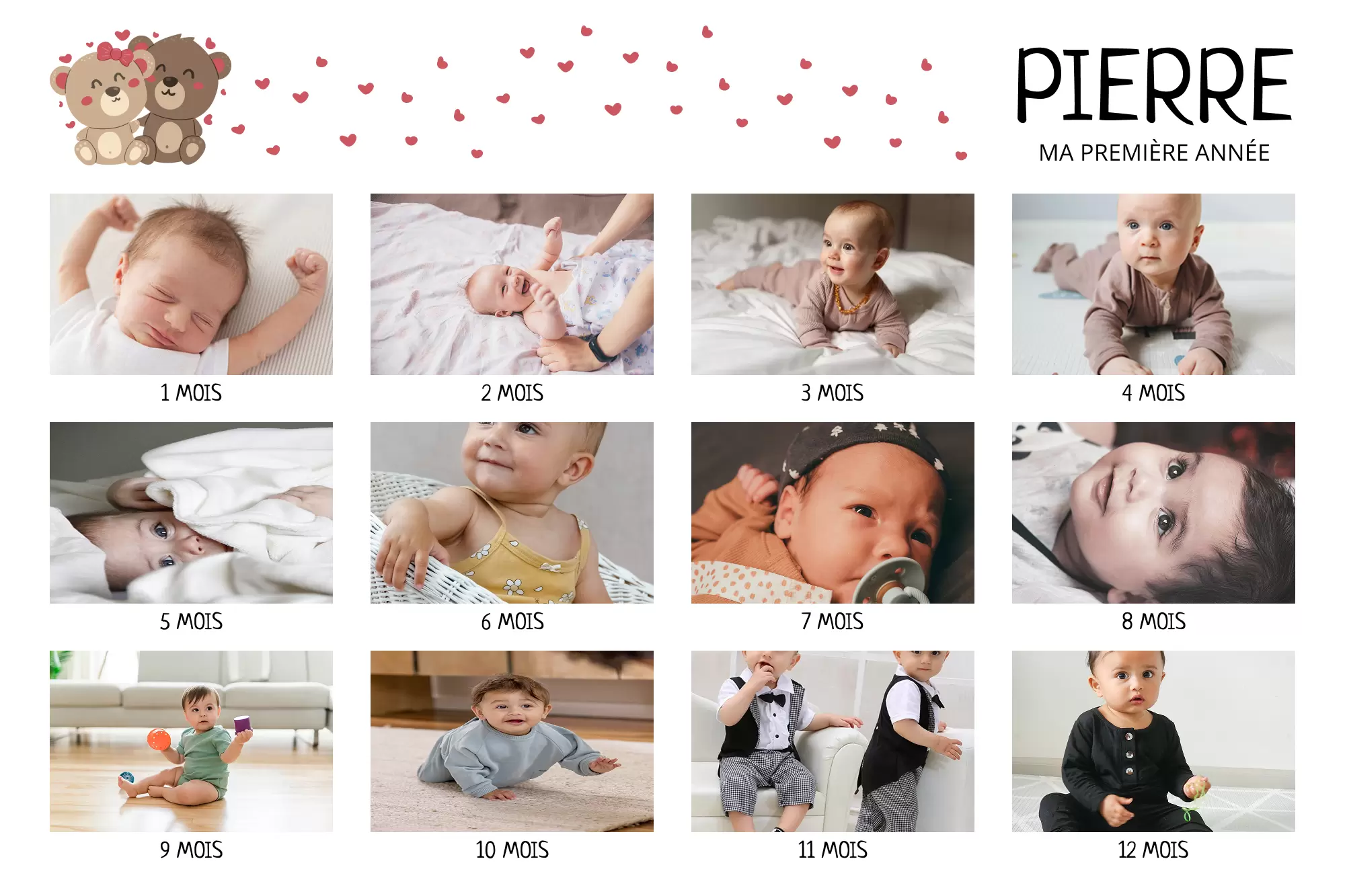 Nous créons un collage facilement et rapidement grâce à des modèles prêts à l'emploi. Un cadeau unique pour toute célébration avec un design personnalisé pour votre collage de photos.