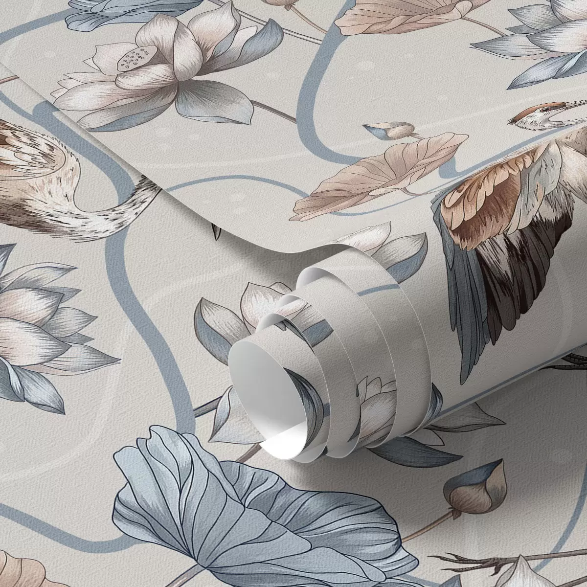 Papiers peints Composition avec grues et lotus dans des couleurs pastel Nr. a00064