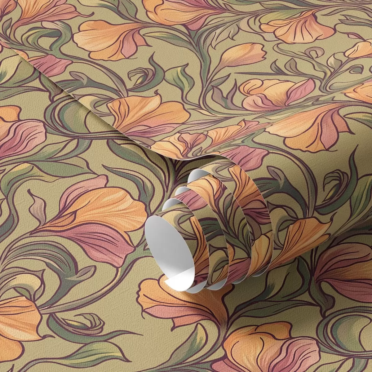 Papiers peints Tiges torsadées brillantes avec des feuilles et des fleurs Nr. a00074