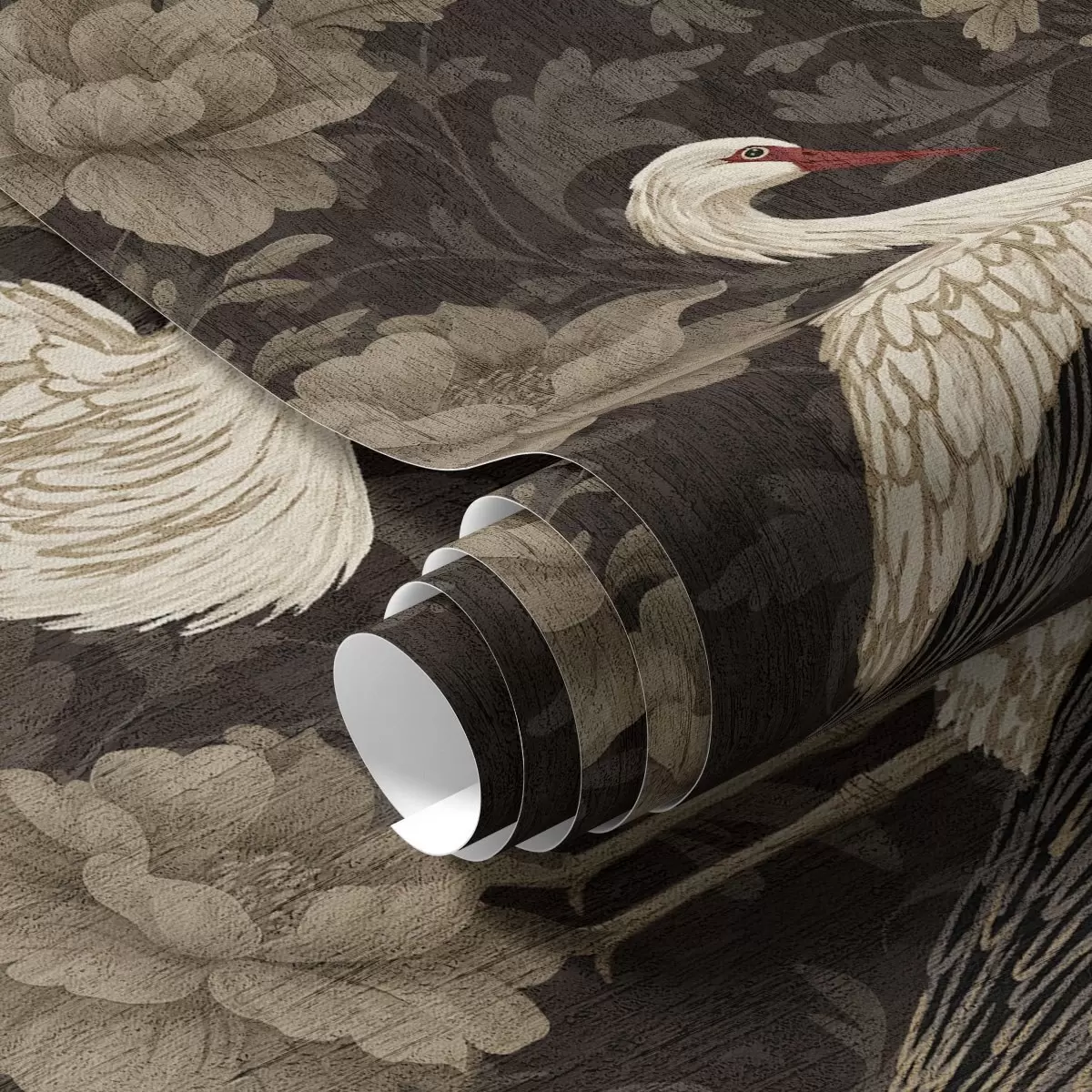 Papiers peints Grues parmi de grandes fleurs dans une palette pastel classique Nr. a00108