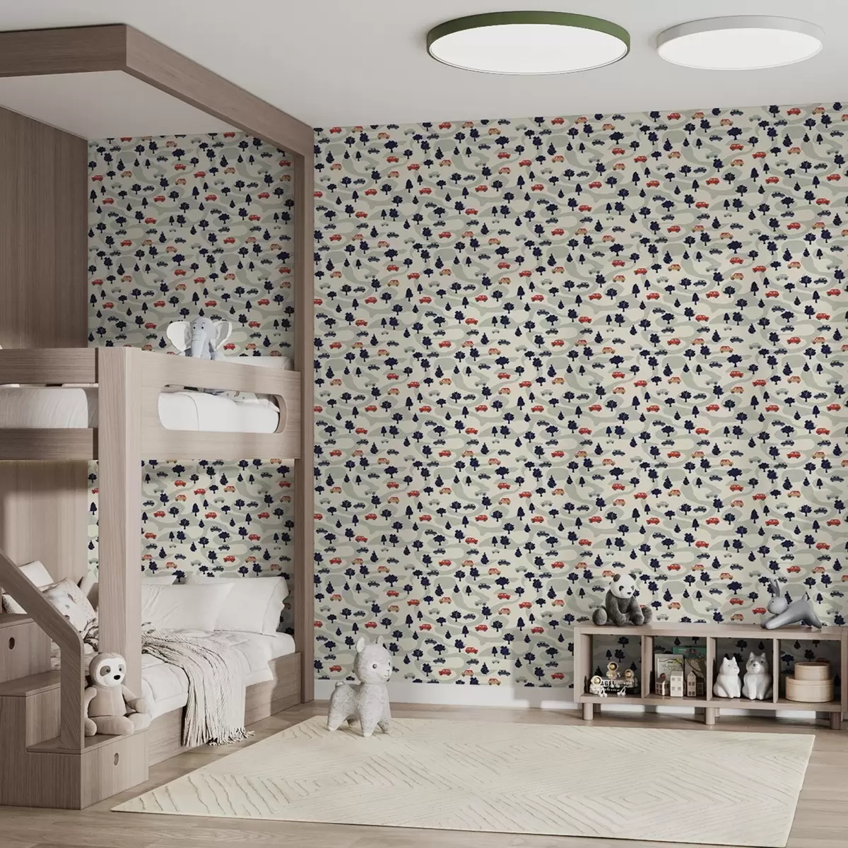Papiers peints Funny cars parmi les arbres sur fond crème Nr. a00119