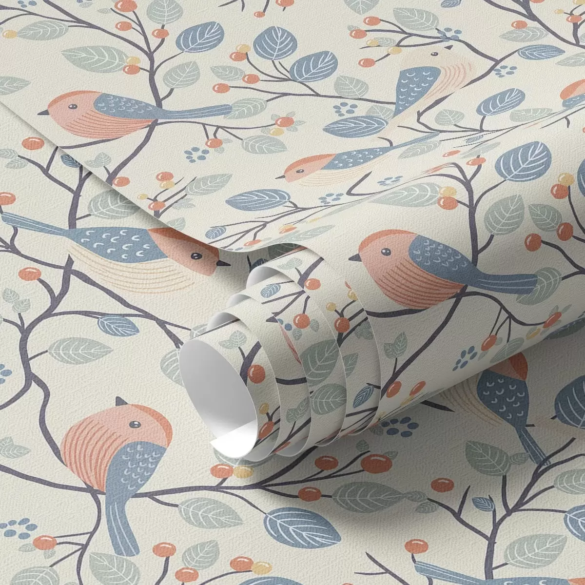 Papiers peints Oiseaux et brindilles pastel sur fond clair Nr. a00128