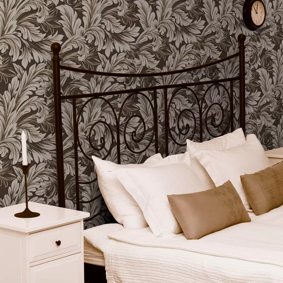 Papiers peints Motif baroque de feuilles sur fond sombre Nr. a00135v5