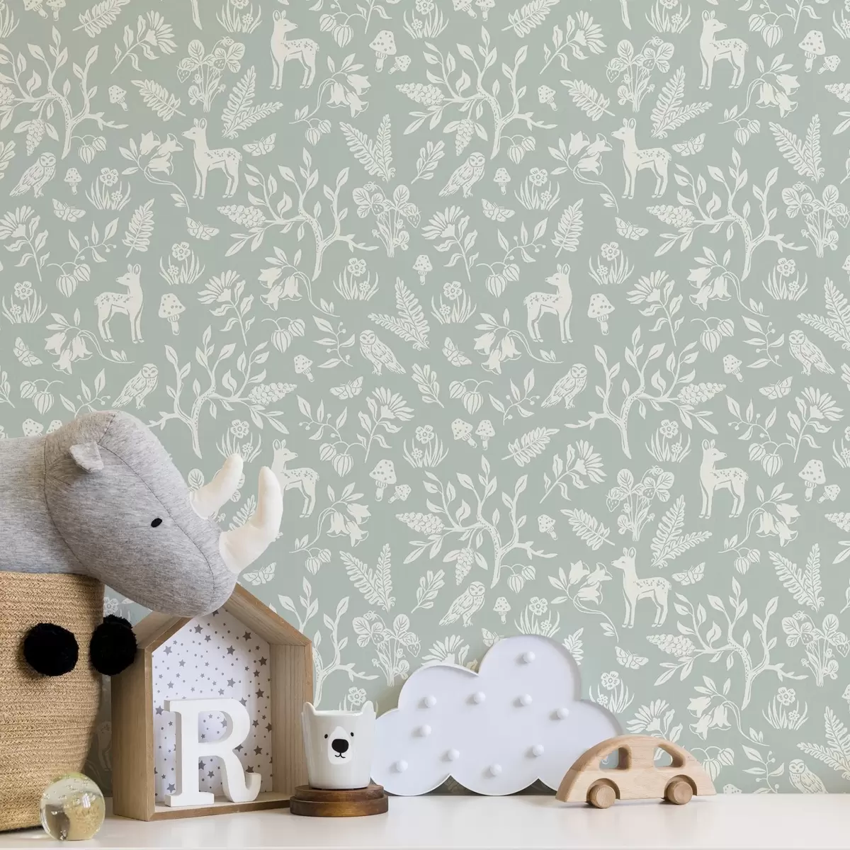 Papiers peints Animaux et plantes scandinaves sur fond de menthe Nr. a00149