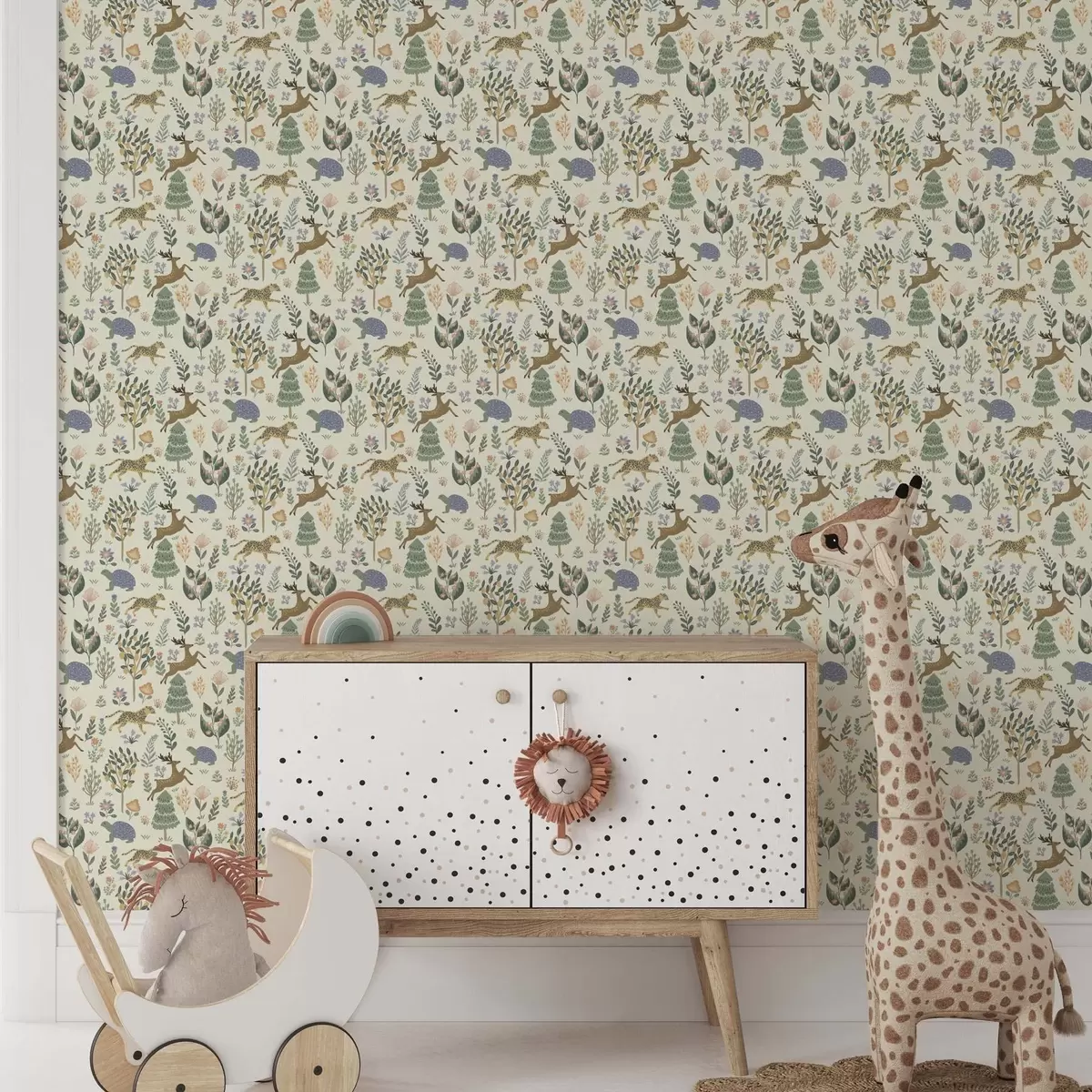 Papiers peints Illustration rétro avec des léopards, des arbres et des cerfs Nr. a00184