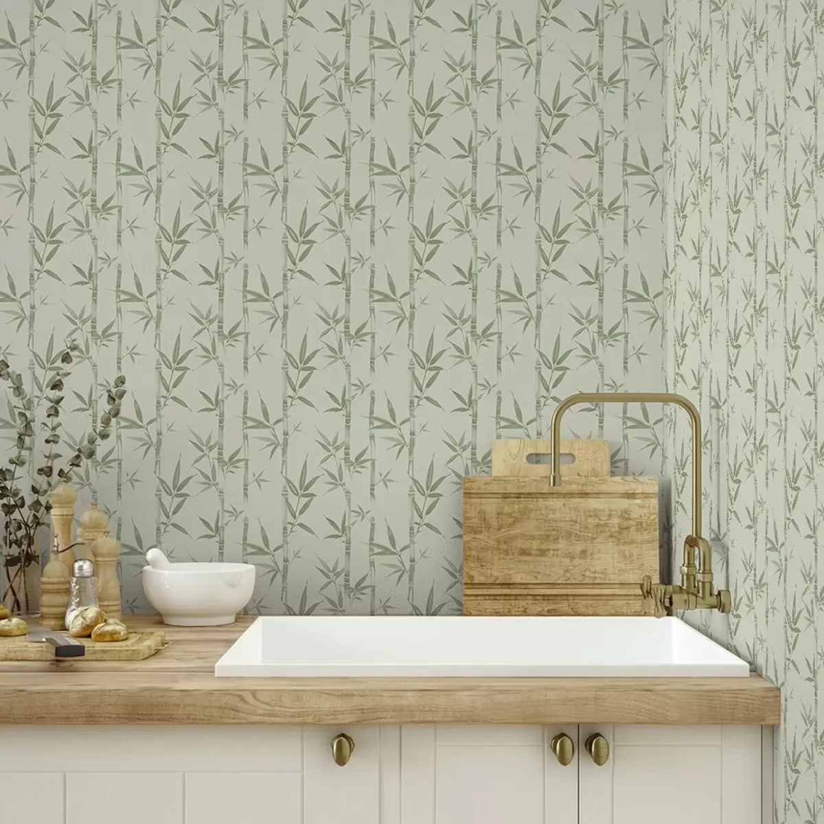 Papiers peints Bambou vert clair sur fond pastel Nr. a00236v1