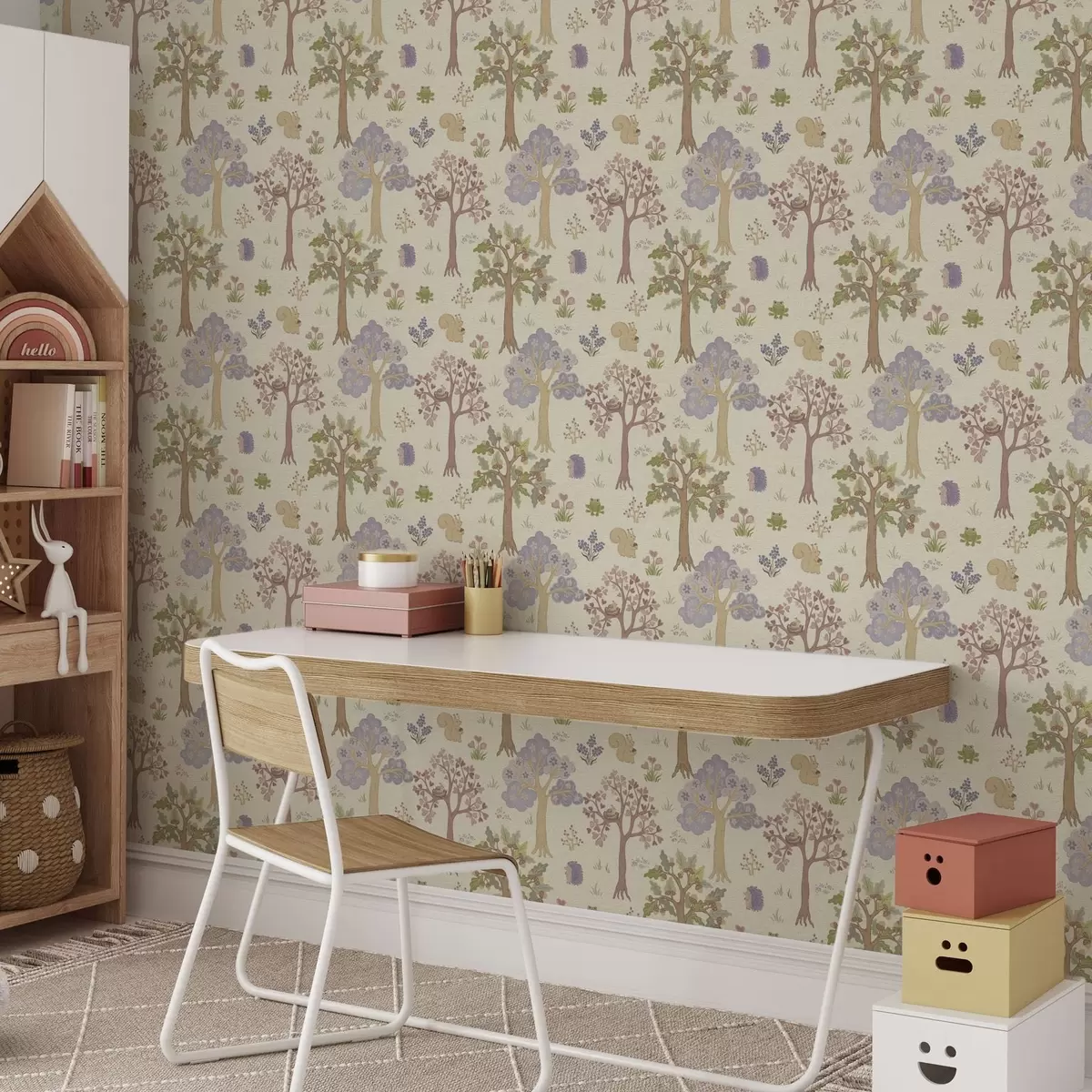 Papiers peints Forêt de fées avec animaux dans un style enfantin Nr. a00264