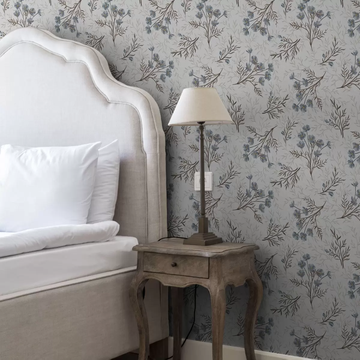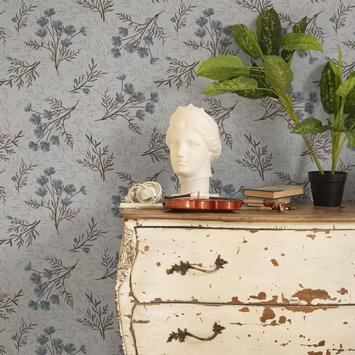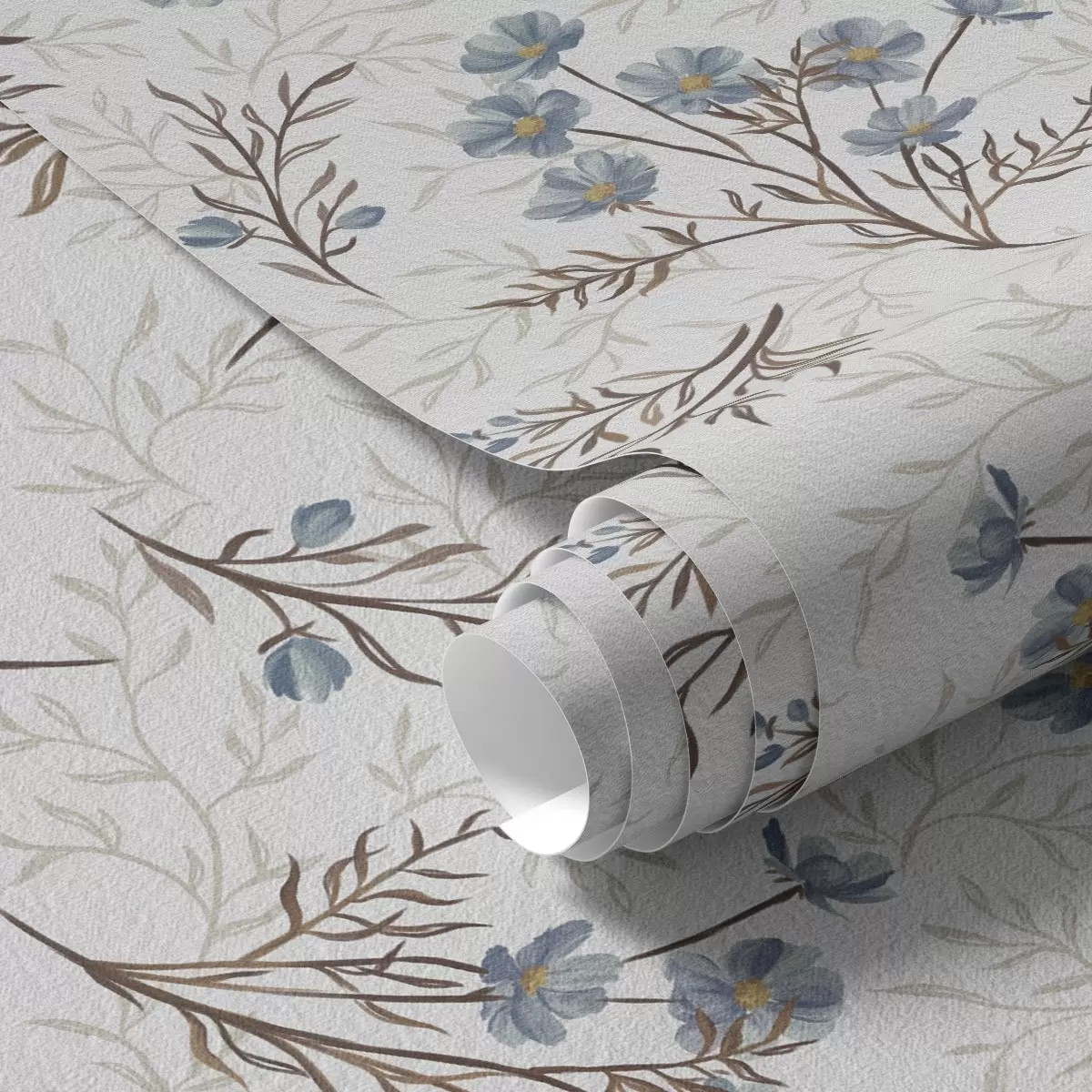 Papiers peints Fleurs bleues et branches légères sur fond blanc Nr. a00265v1