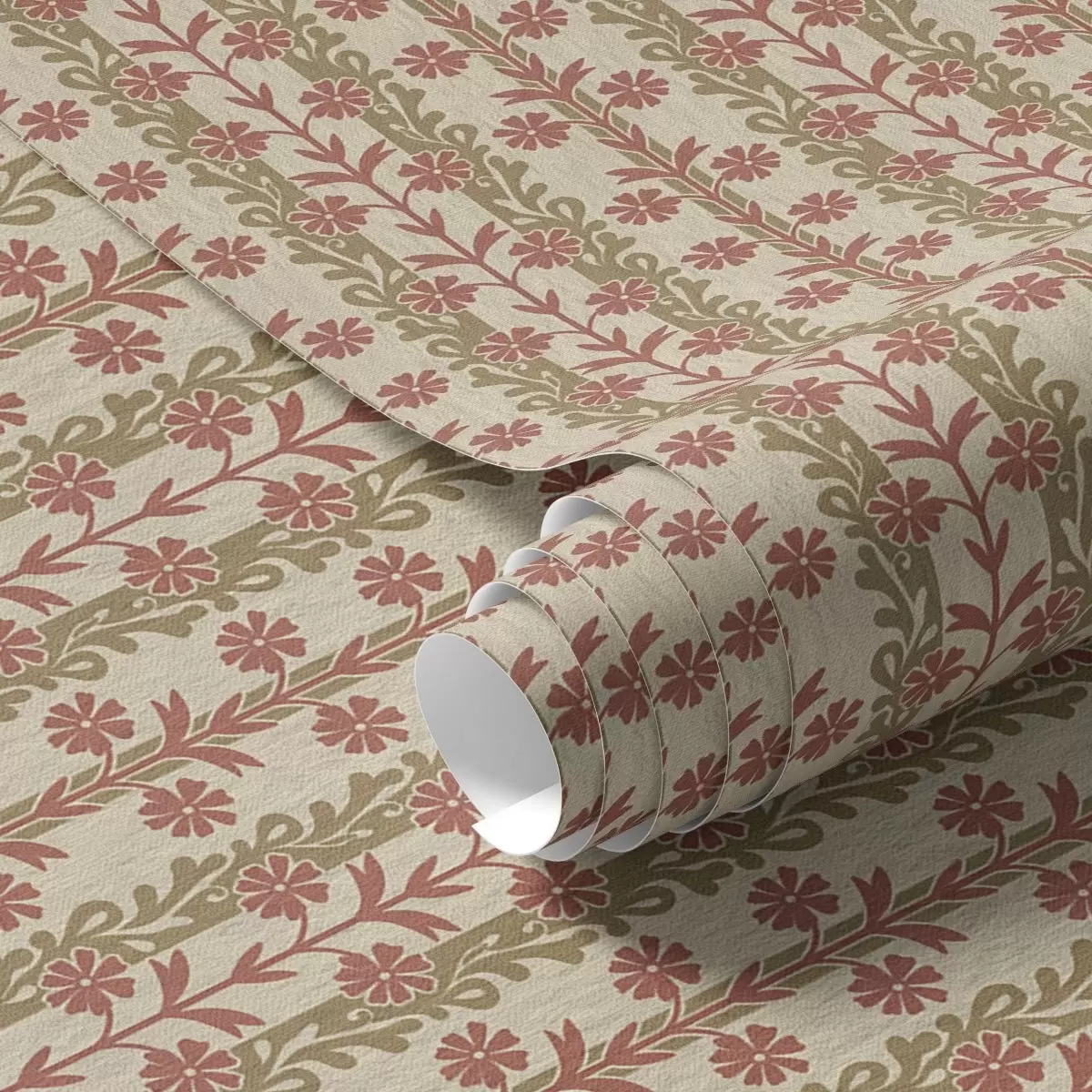 Papiers peints Ornement rayé avec fleurs rouges Nr. a00341
