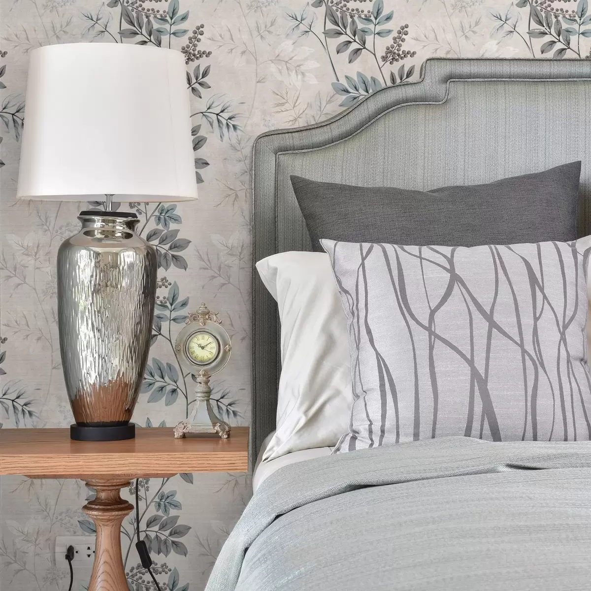 Papiers peints Branches de baies dans des tons pastel avec des feuilles gris-bleu Nr. a00443