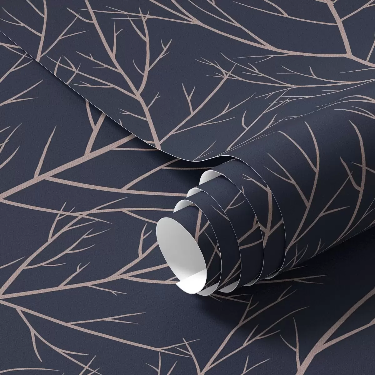 Papiers peints Branches rouges douces sur fond bleu marine profond Nr. a00451
