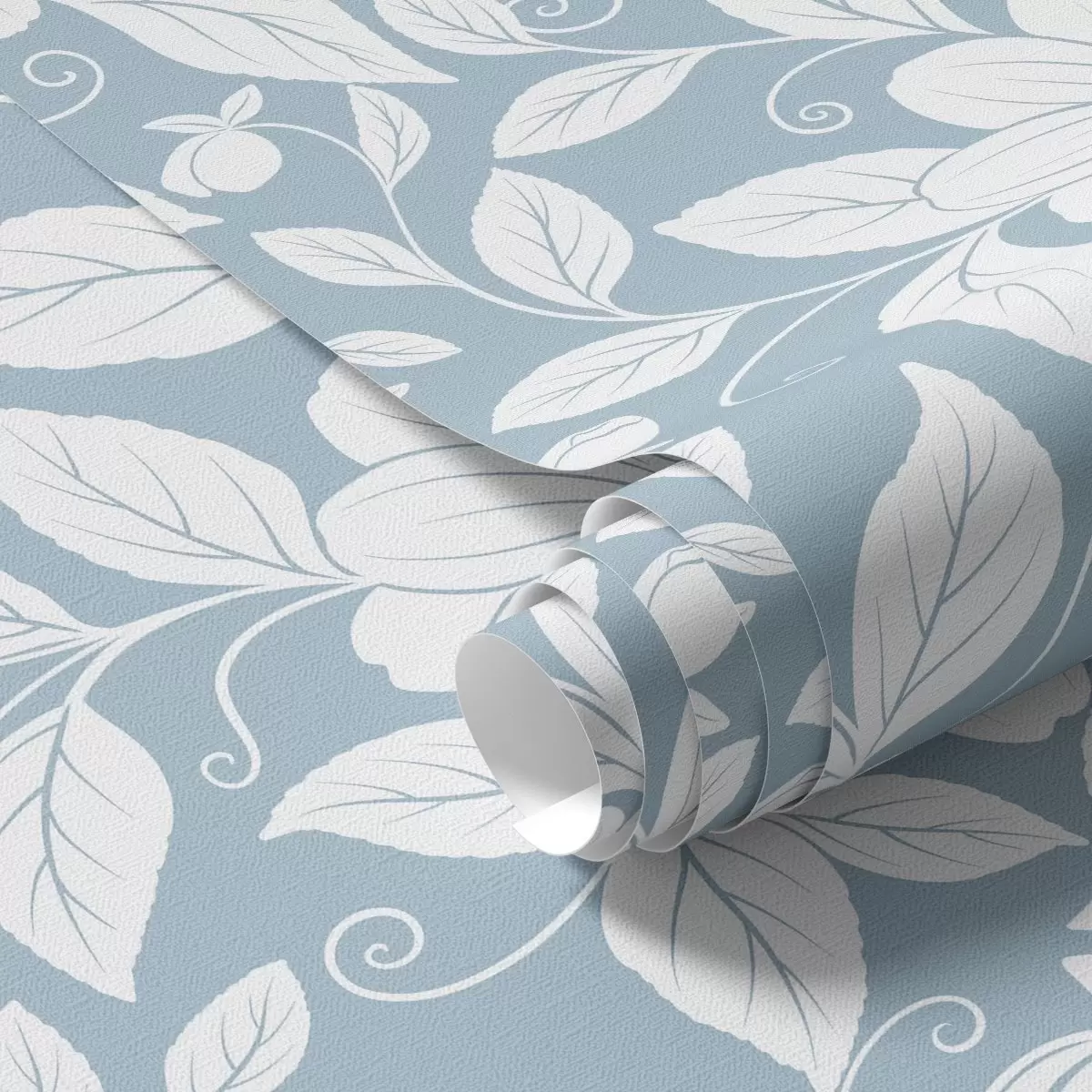 Papiers peints Contour floral blanc sur fond bleu pastel Nr. a00452