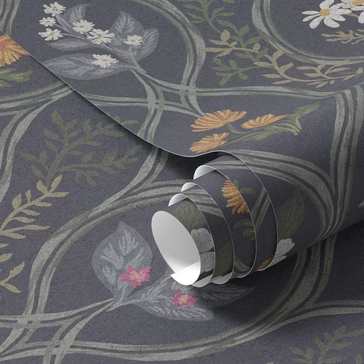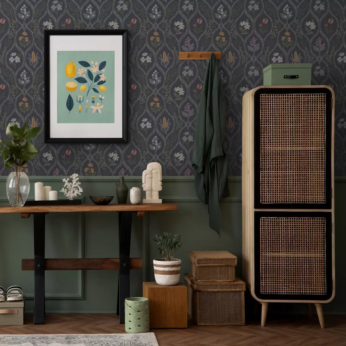 Papiers peints Cadre vintage foncé avec des fleurs de jardin colorées Nr. a00454