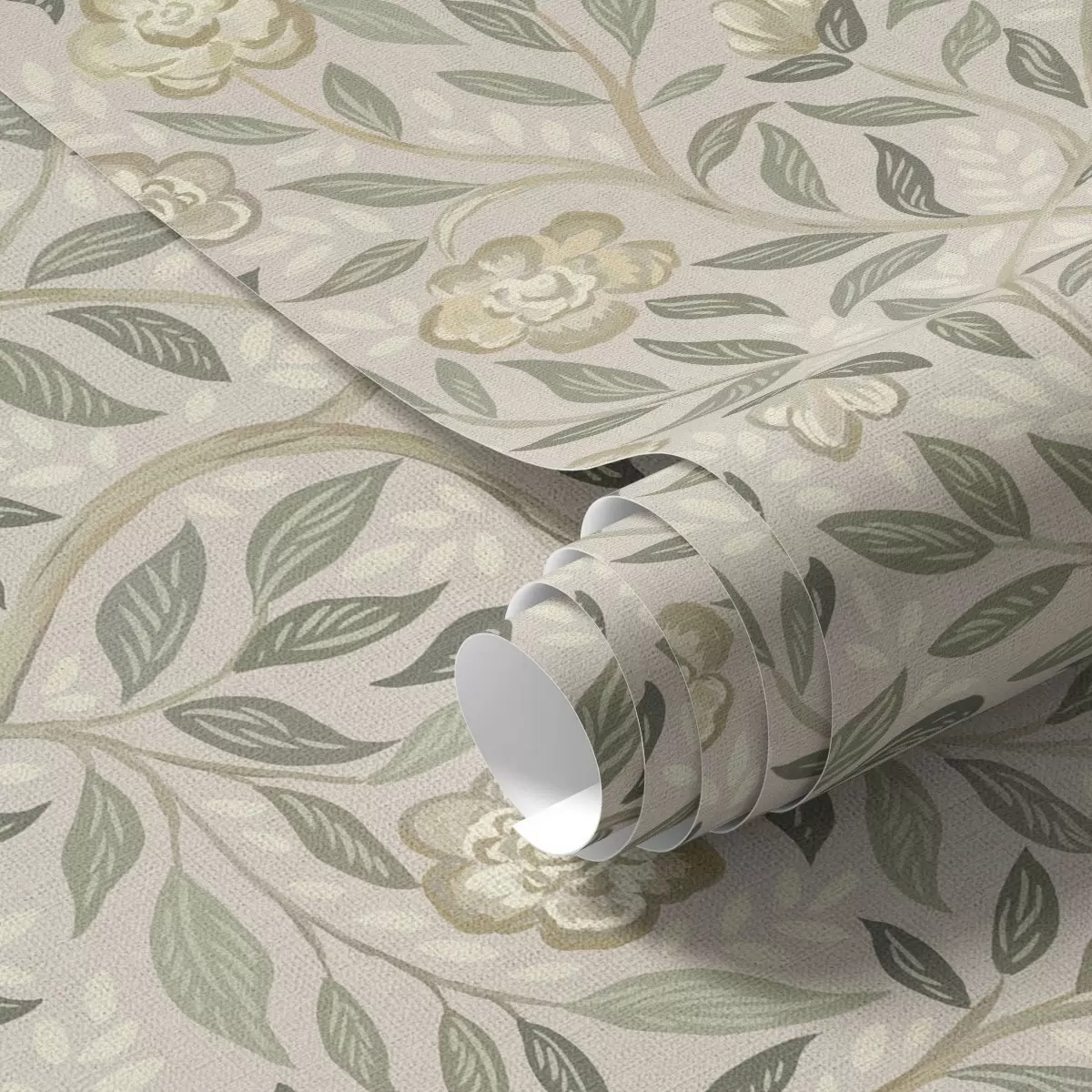Papiers peints Roses de couleur crème et feuilles d'olivier sur fond de rose poussiéreux Nr. a00455
