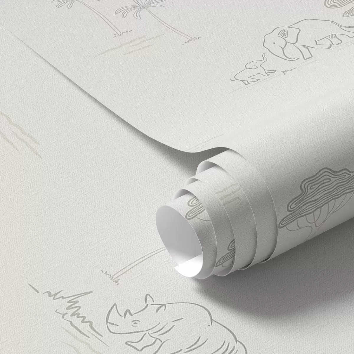 Papiers peints Safari minimaliste : éléphants, rhinocéros, léopards et palmiers Nr. a00492