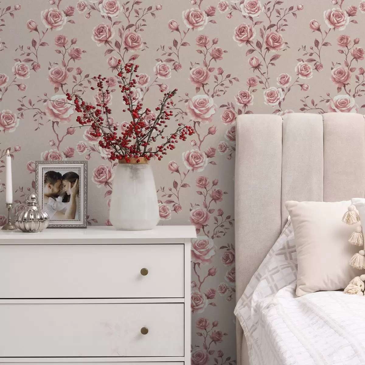 Papiers peints Roses poudrées sur fond beige — motif vintage Nr. a00497