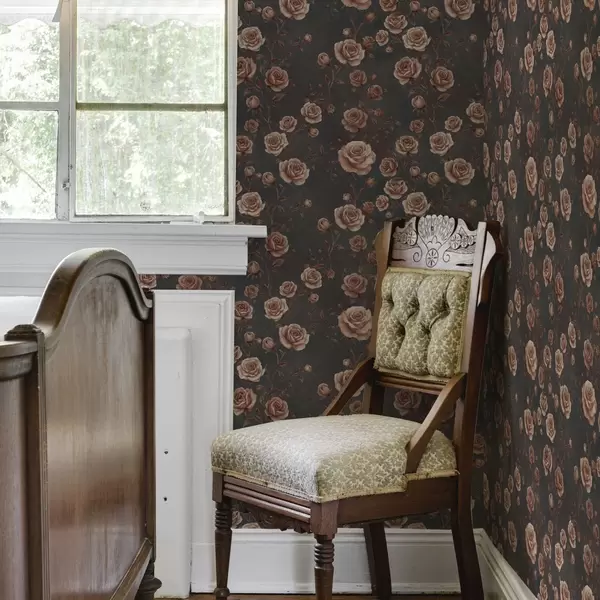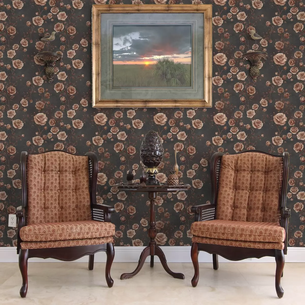 Papiers peints Roses vintage sur fond graphite, palette terracotta Nr. a00497v1