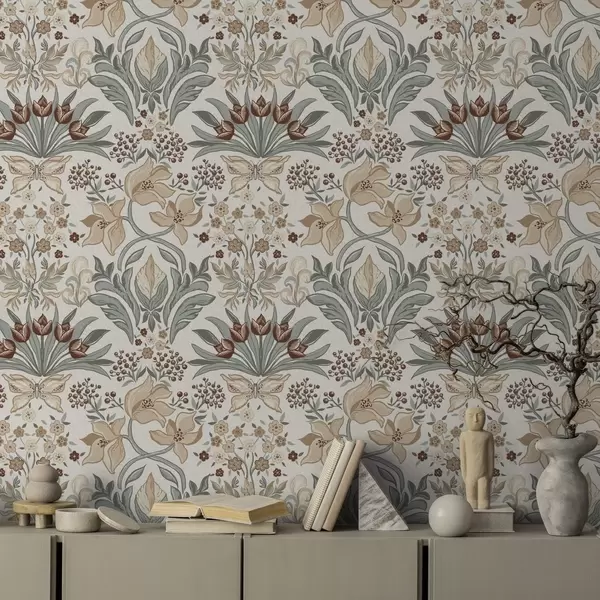 Papiers peints Lys décoratifs et papillon sur fond crème Nr. a00500