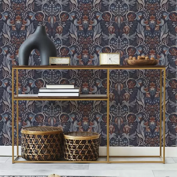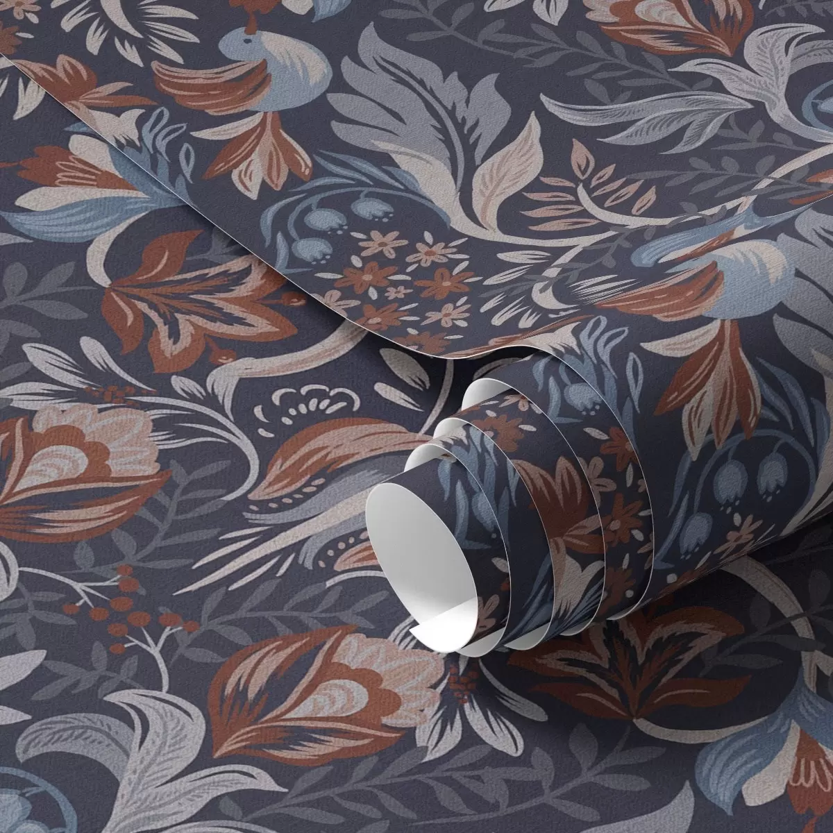 Papiers peints Fleurs et oiseaux folkloriques sur fond bleu foncé Nr. a00502