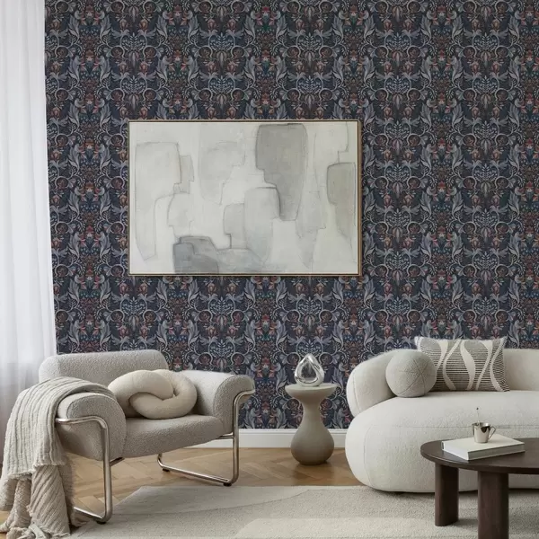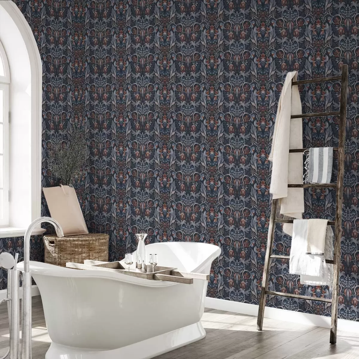 Papiers peints Ornement folklorique avec des oiseaux, indigo foncé Nr. a00502v1