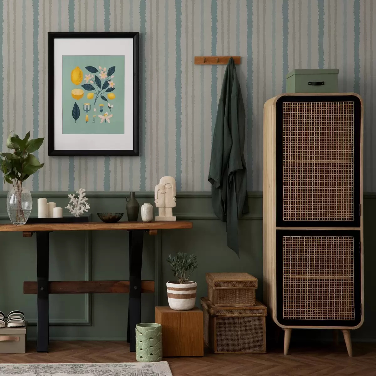 Papiers peints Rayures turquoise-beige avec effet peint à la main Nr. a00510v1