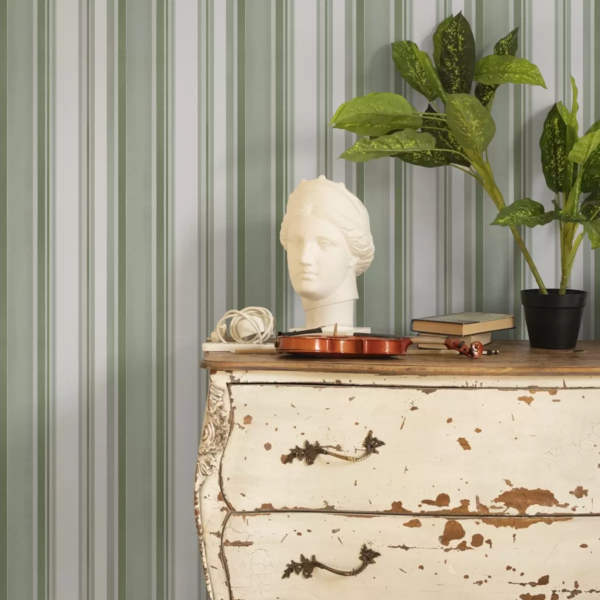 Papiers peints Rayures vertes avec intervalles blancs et lignes fines Nr. a00526