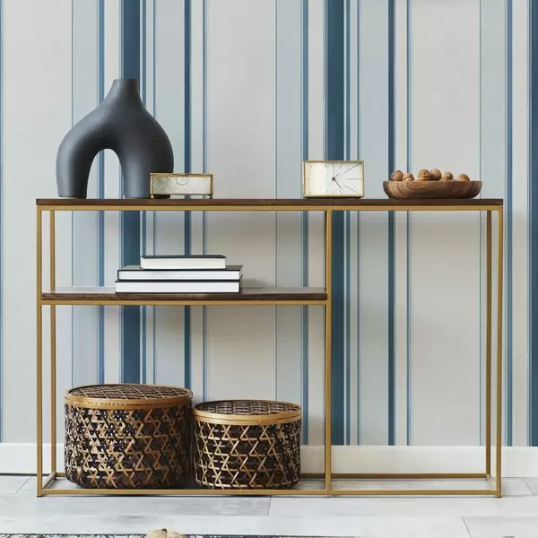 Papiers peints Nombreuses rayures verticales de couleur turquoise et bleue Nr. a00529