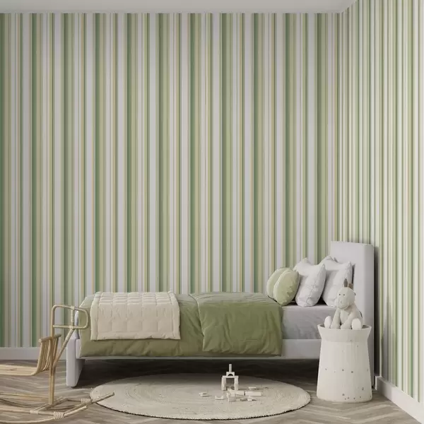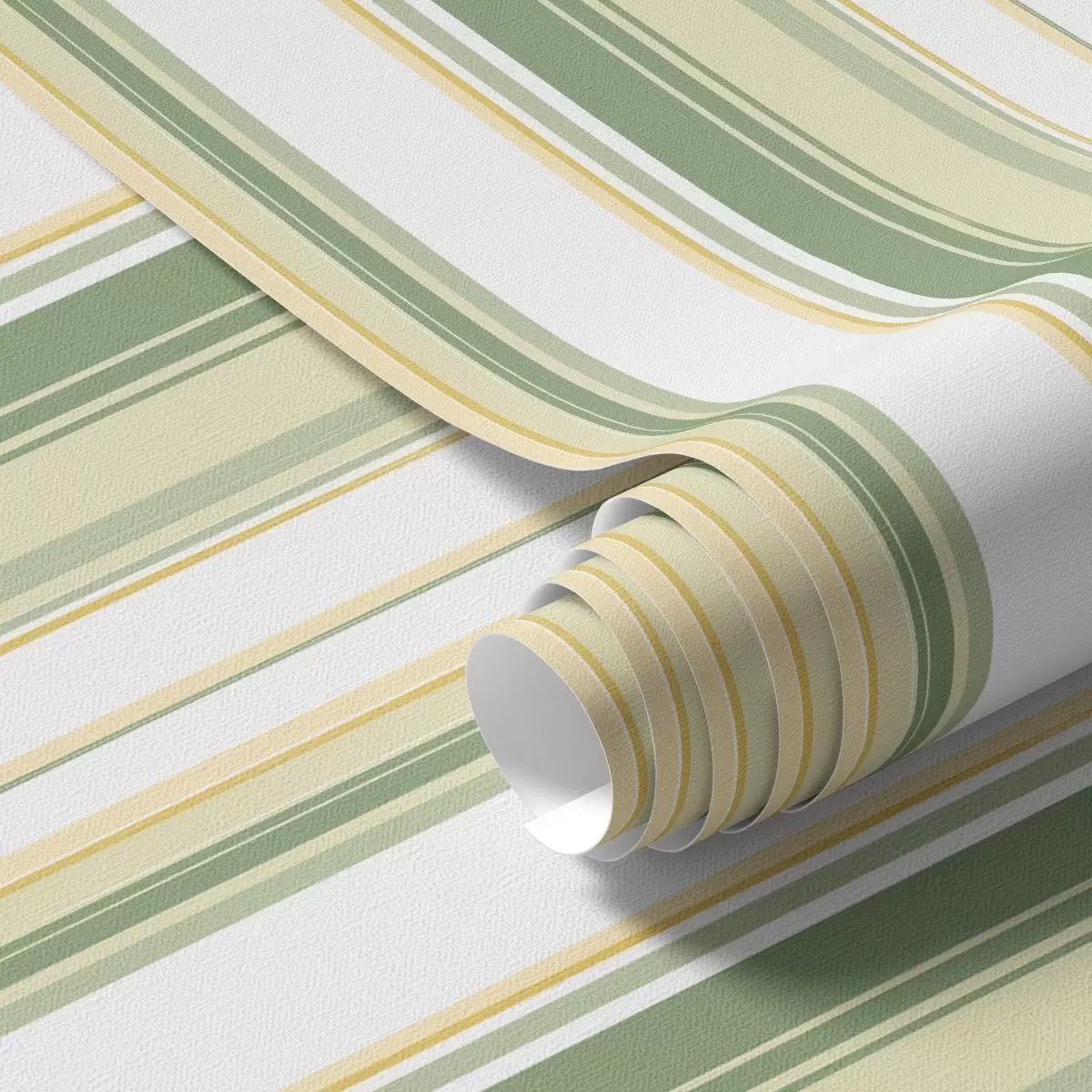 Papiers peints Rayures vertes et beiges avec lignes d'accentuation jaunes Nr. a00531