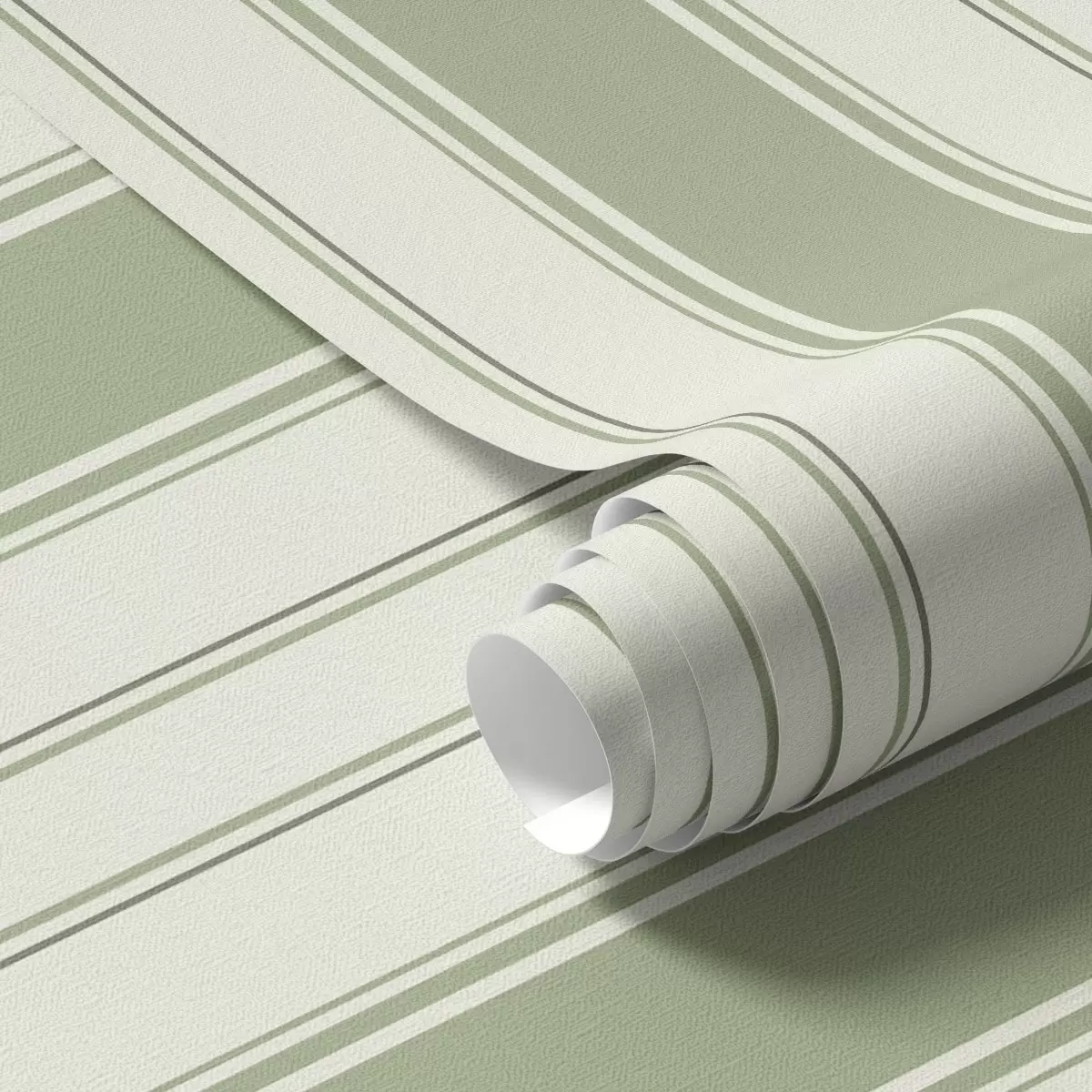 Papiers peints Fond crème avec des bandes verticales vertes paires Nr. a00560