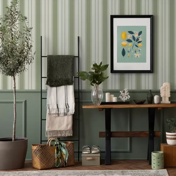 Papiers peints Fond crème avec des bandes verticales vertes paires Nr. a00560