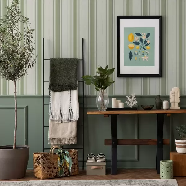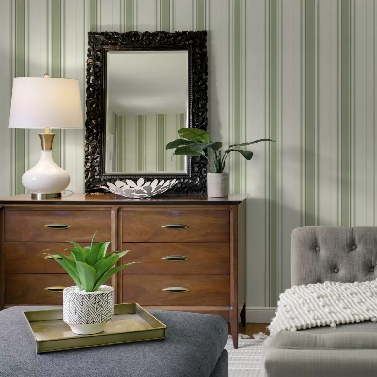 Papier peint Fond clair avec bandes vertes foncées a00562