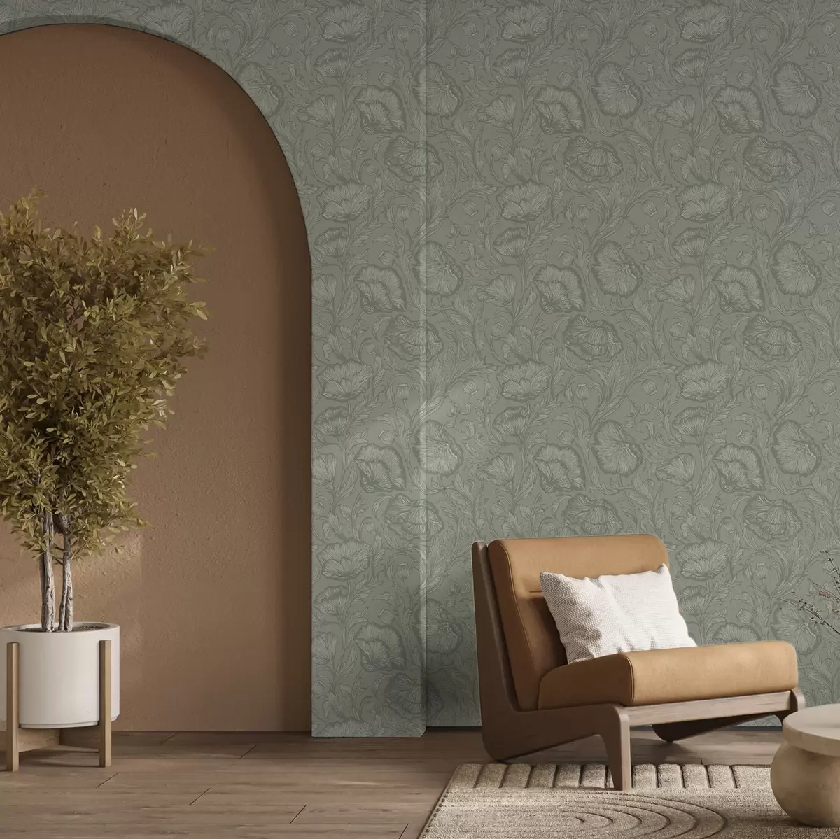Papiers peints Pavots au trait sur fond gris-vert Nr. a00572v1
