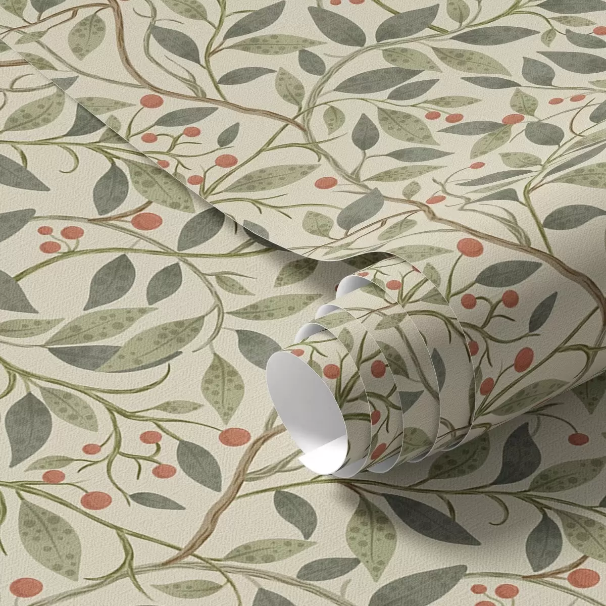 Papiers peints Branches d'olivier avec des baies sur un fond clair et chaud Nr. a00573
