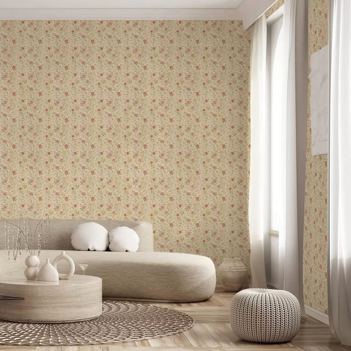 Papiers peints Roses vintage couleur pêche et jaune sur fond crème Nr. a00577