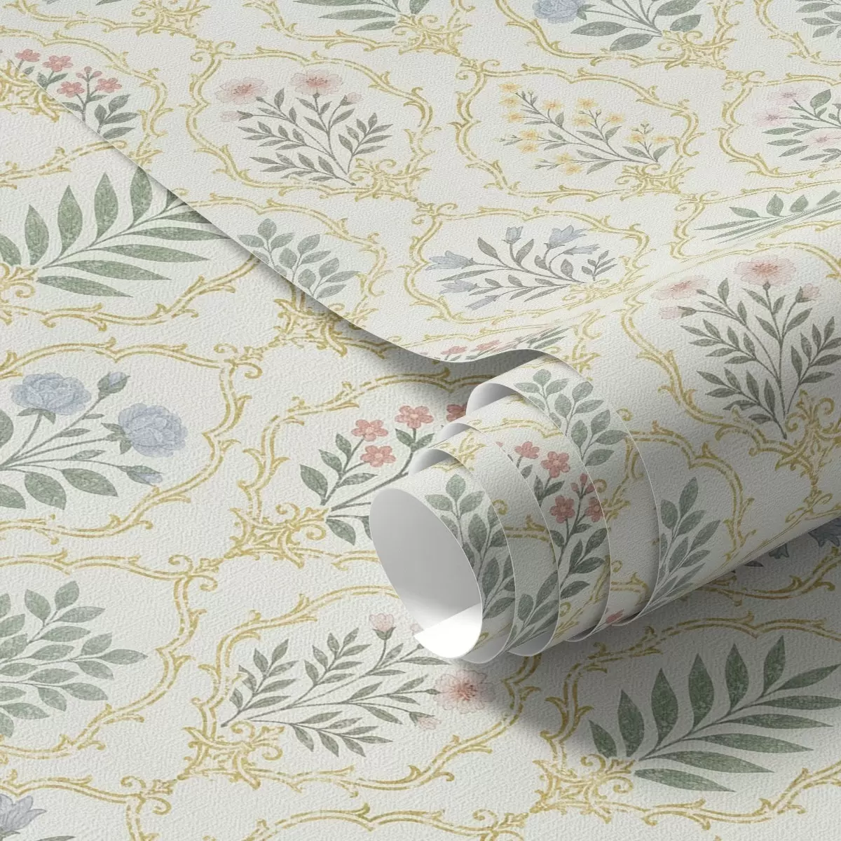 Papiers peints Médaillons botaniques dans un treillis, tons pastel Nr. a00579