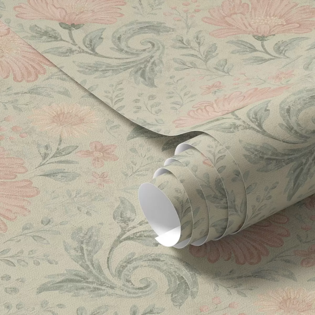 Papiers peints Grandes fleurs de pêcher vintage avec feuilles de sauge Nr. a00580