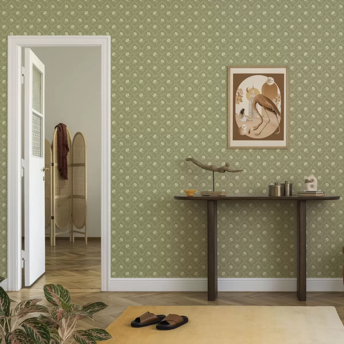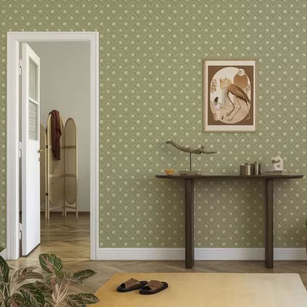Papiers peints Treillis d'oliviers avec fleurs crème, ornement rétro Nr. a00585