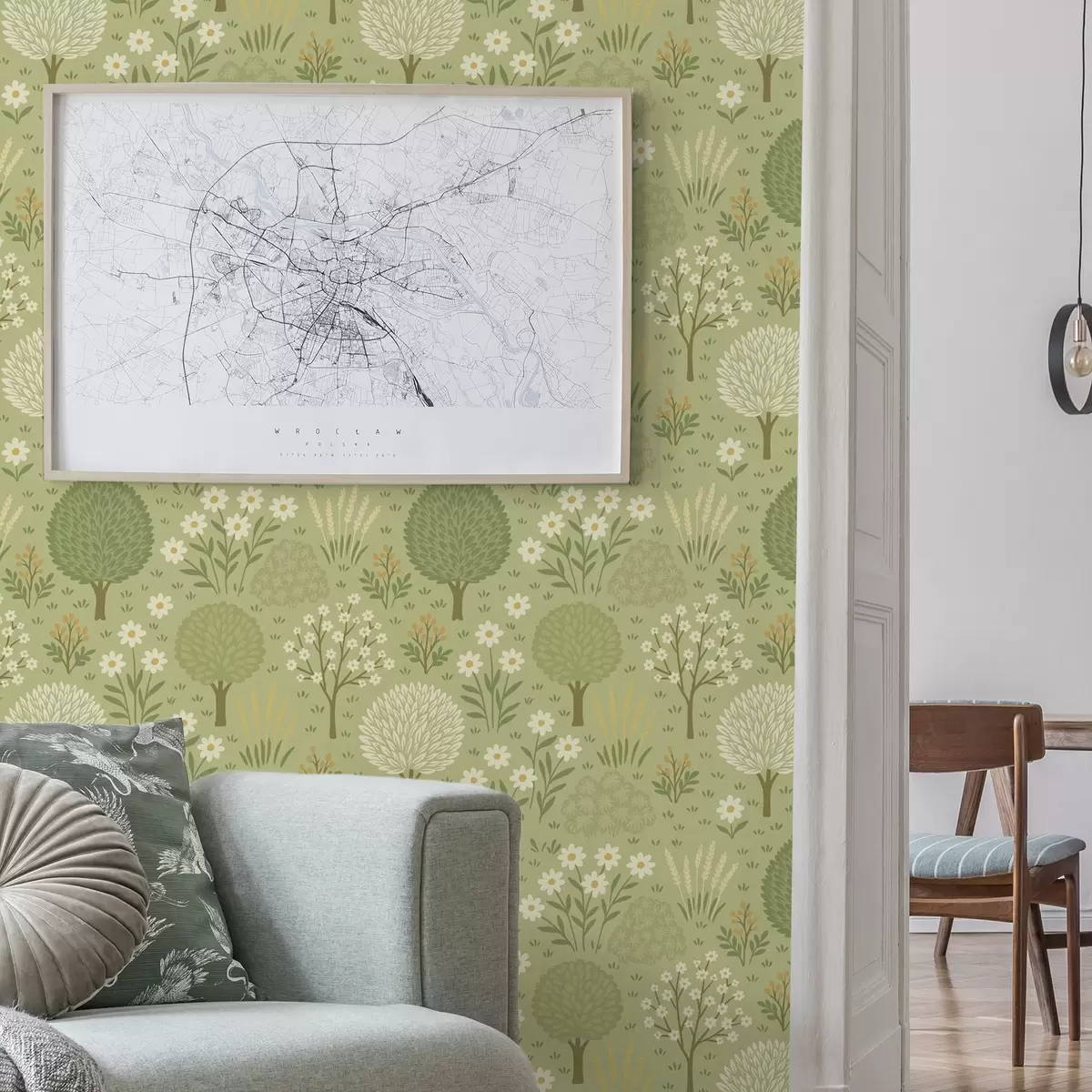 Papiers peints Jardin écologique pour enfants : arbres, fleurs et blé Nr. a00586
