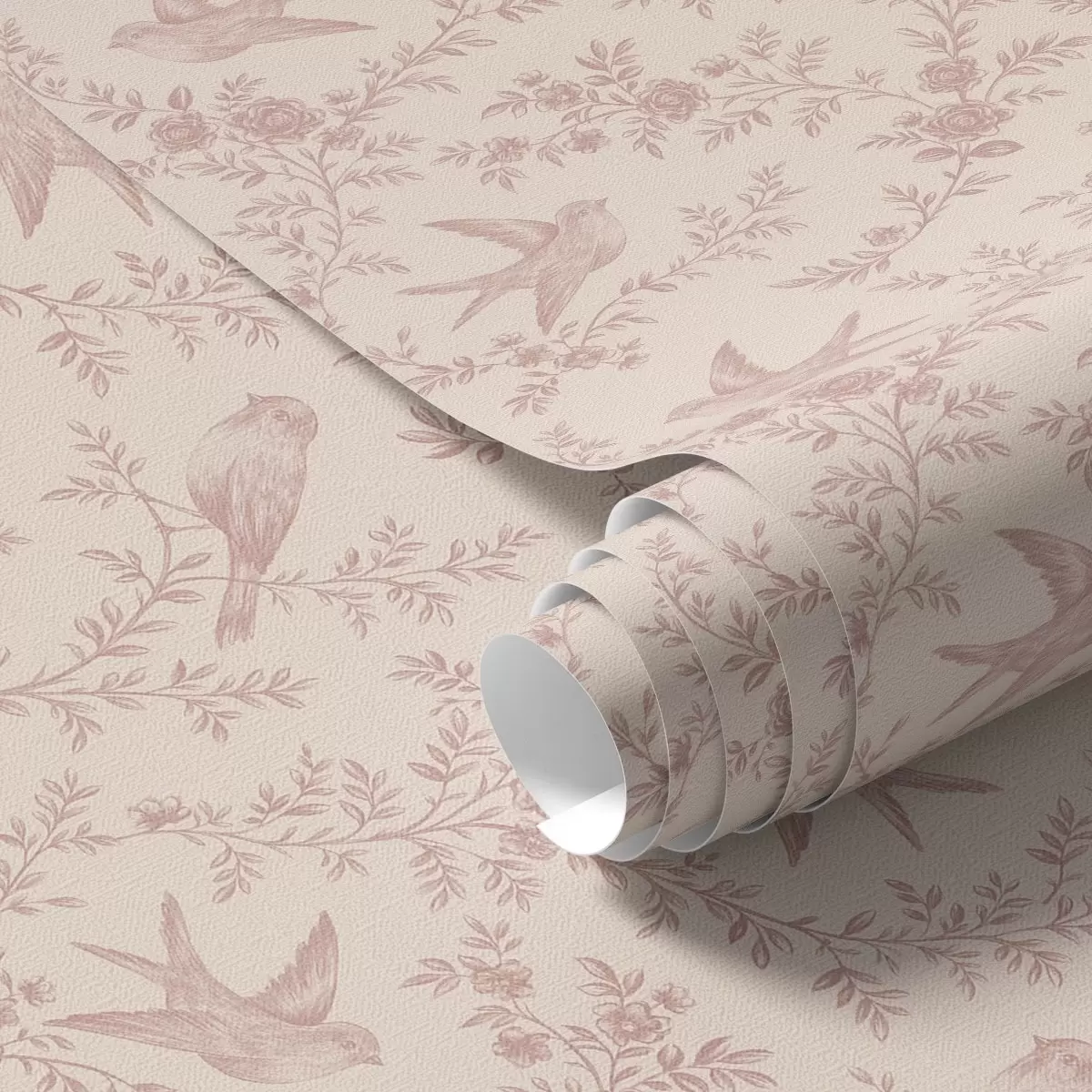Papiers peints Oiseaux et roses, motif vintage sur fond rose poudré Nr. a00587