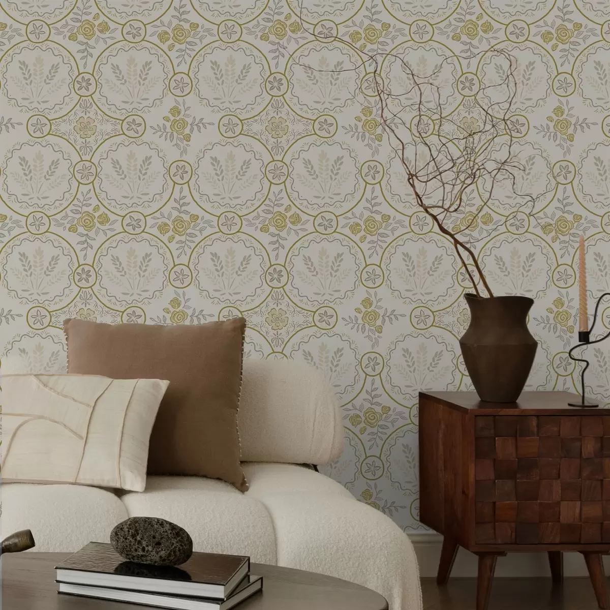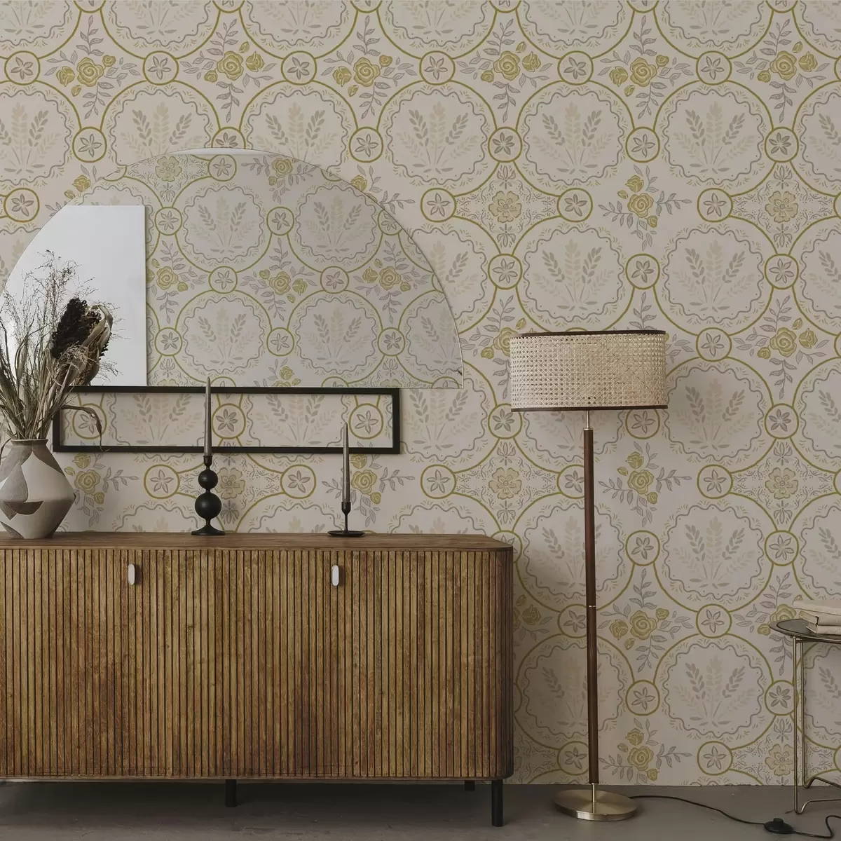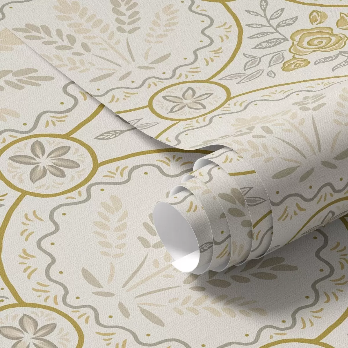 Papiers peints Ornement rétro avec blé et roses dorés Nr. a00595