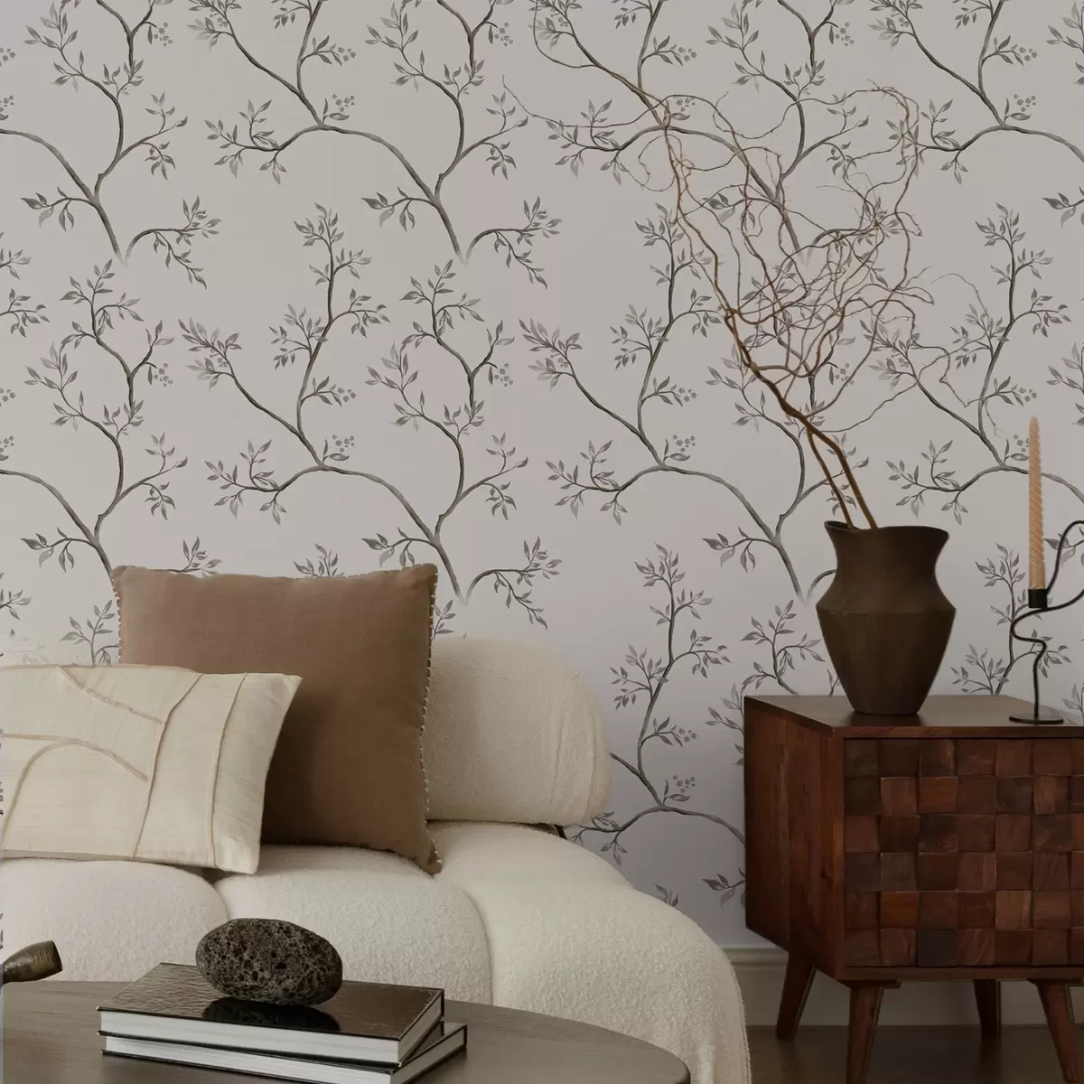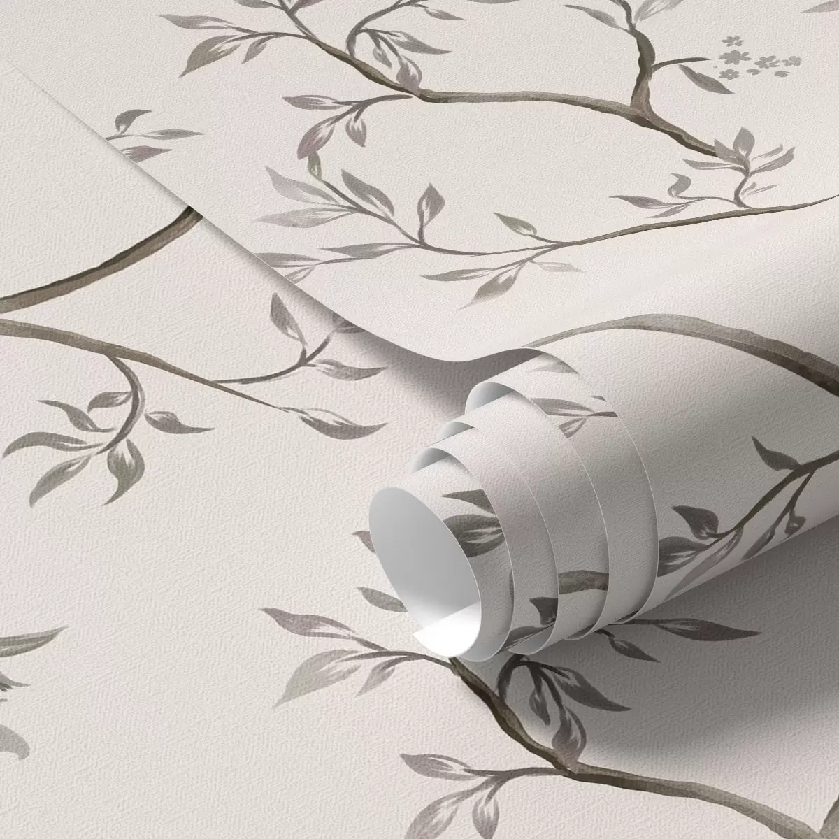 Papiers peints Branches délicates et feuillues sur un fond crème chaud Nr. a00597v1