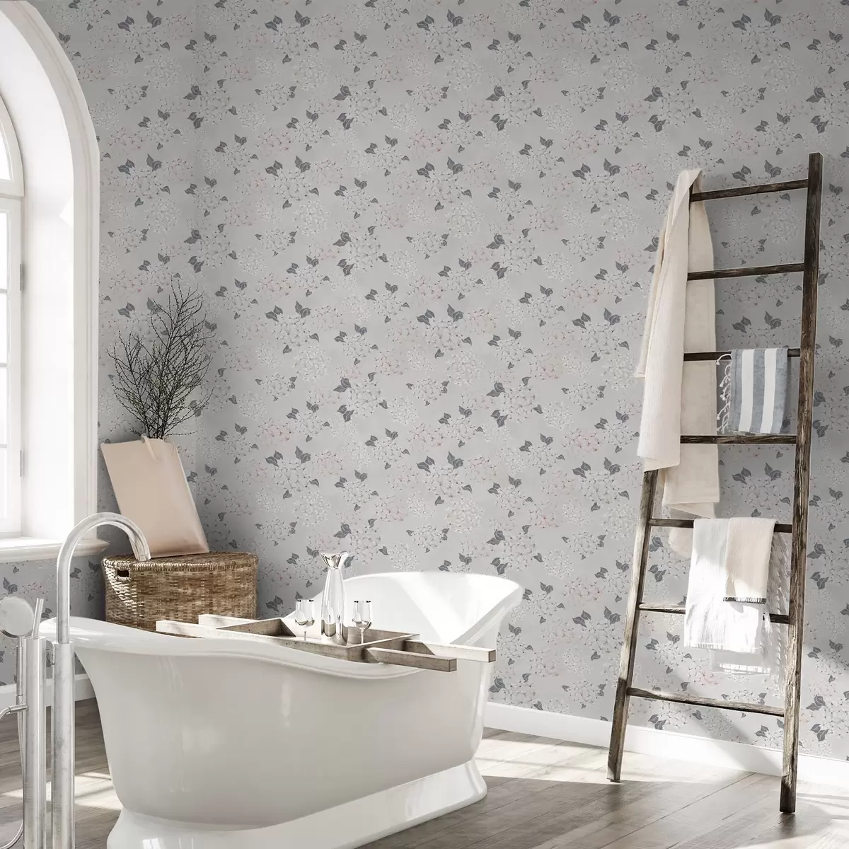 Papiers peints Fleurs aériennes sur fond clair, tons doux rose-gris Nr. a00600