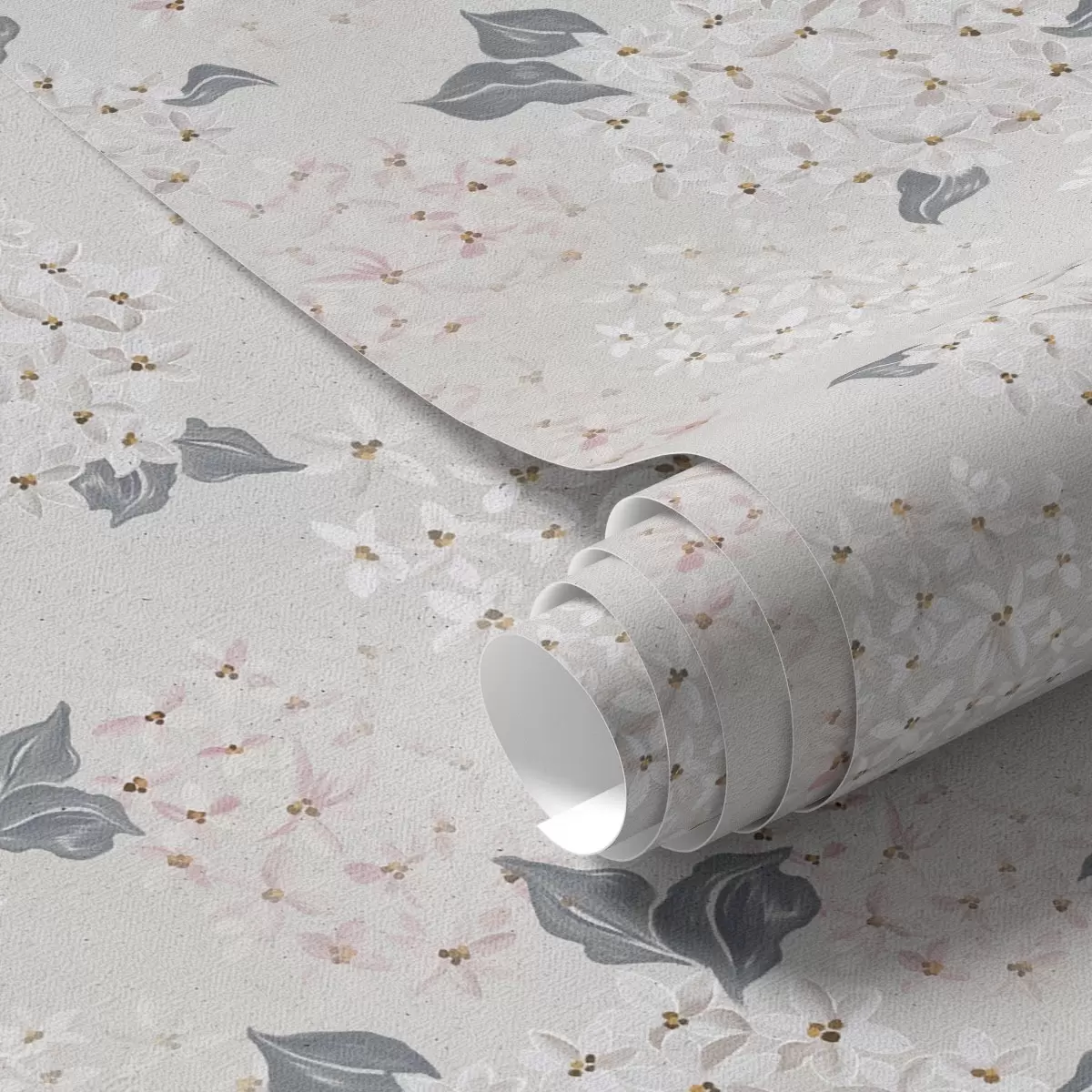 Papiers peints Fleurs aériennes sur fond clair, tons doux rose-gris Nr. a00600
