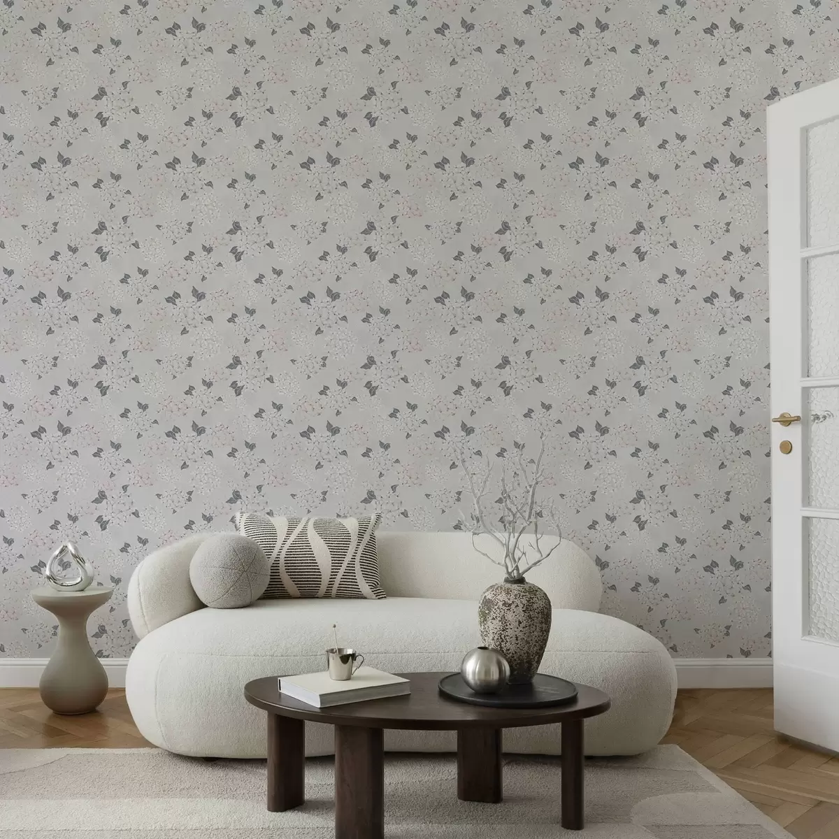 Papiers peints Fleurs aériennes sur fond clair, tons doux rose-gris Nr. a00600