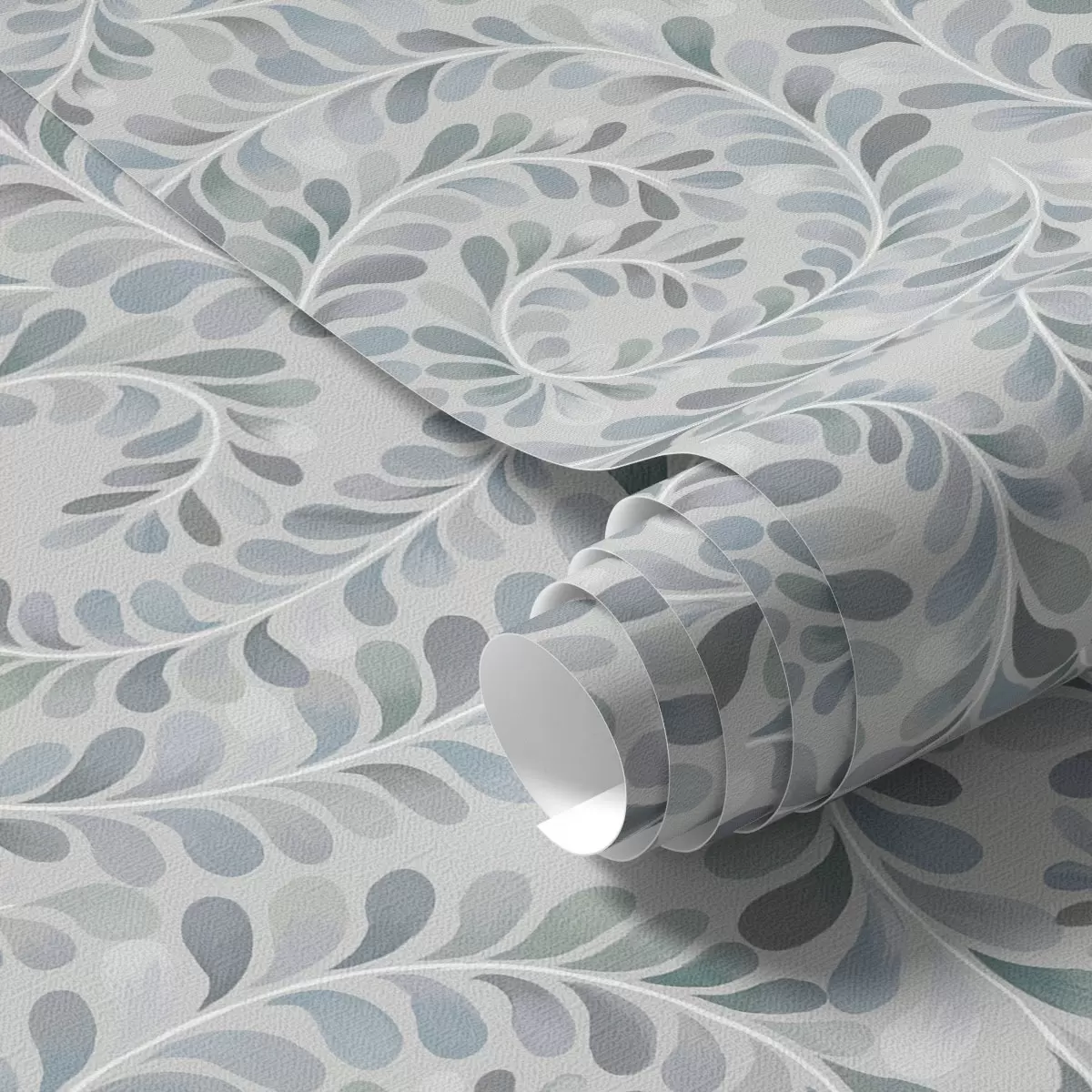 Papiers peints Feuilles en spirale dans une palette bleu-gris-vert Nr. a00602