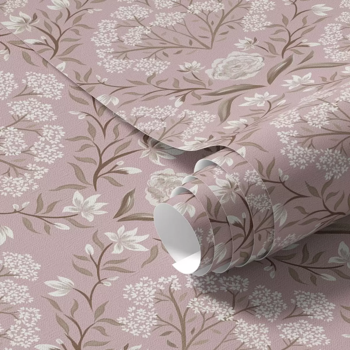 Papiers peints Damassé rose : pivoines, perce-neige et grappes dentelées Nr. a00603